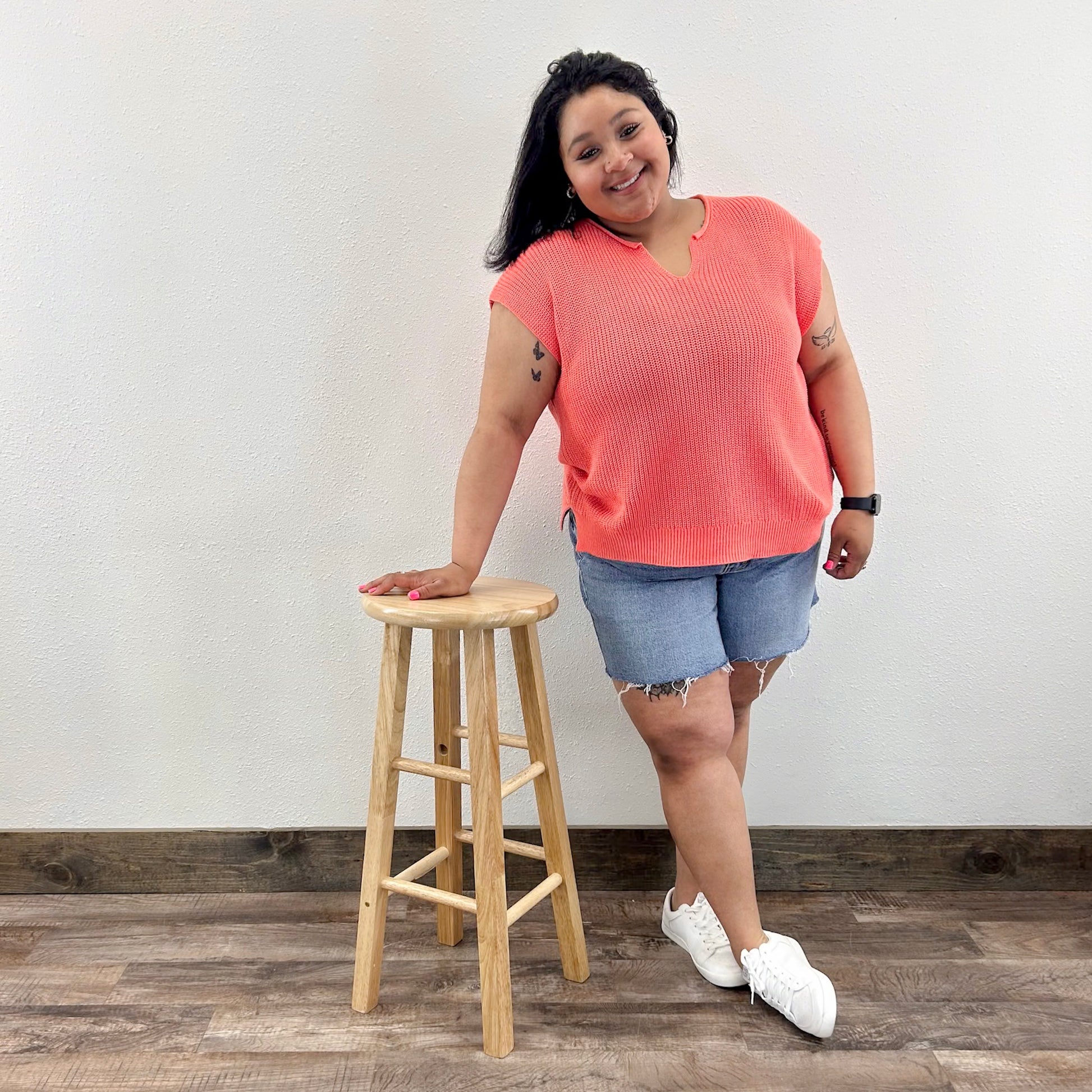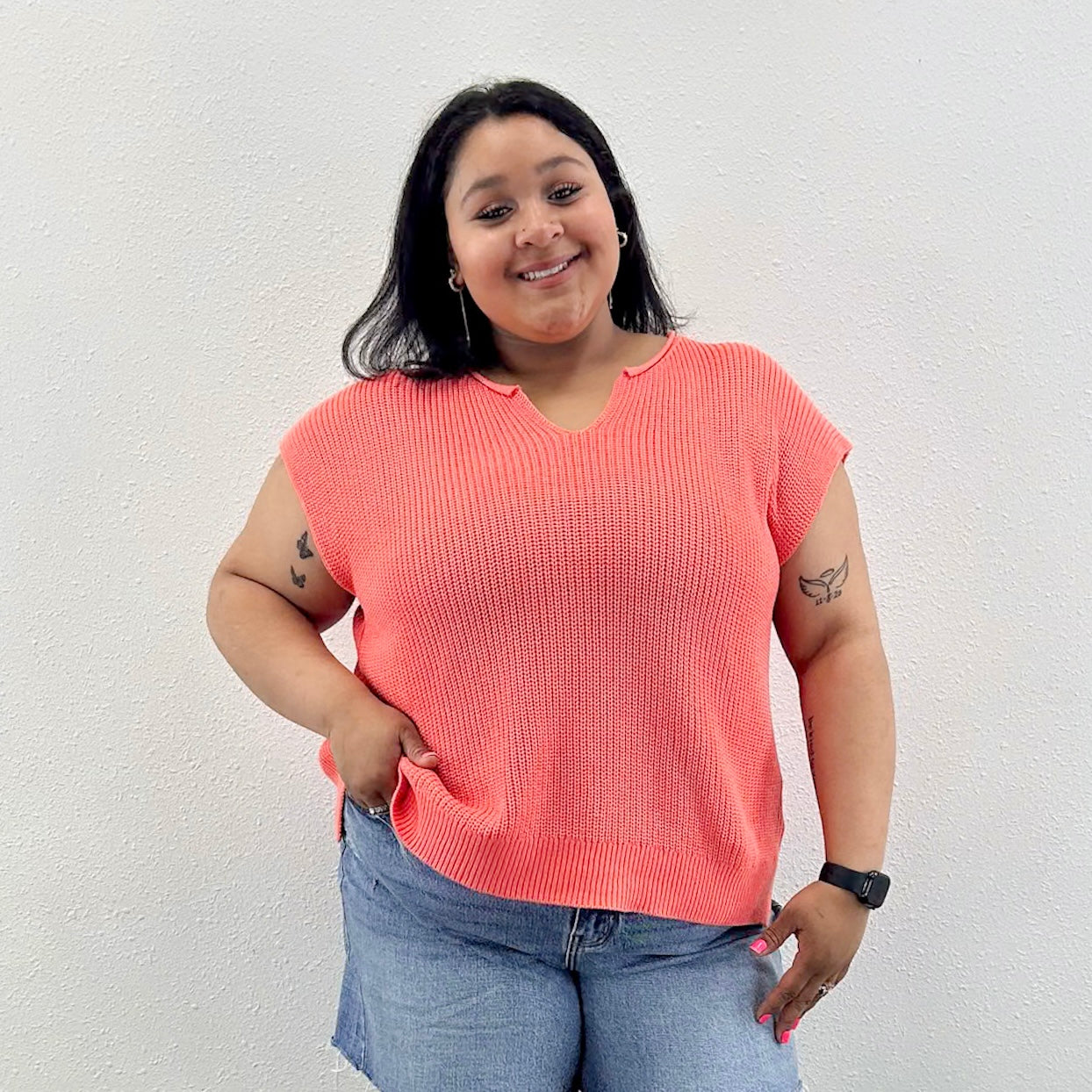 The Flamingo Top is a versatile addition to any wardrobe. This solid notched v neck sweater top offers both comfort and style. Made with high-quality materials, it is durable and perfect for any occasion. Upgrade your fashion game with the Flamingo Top.